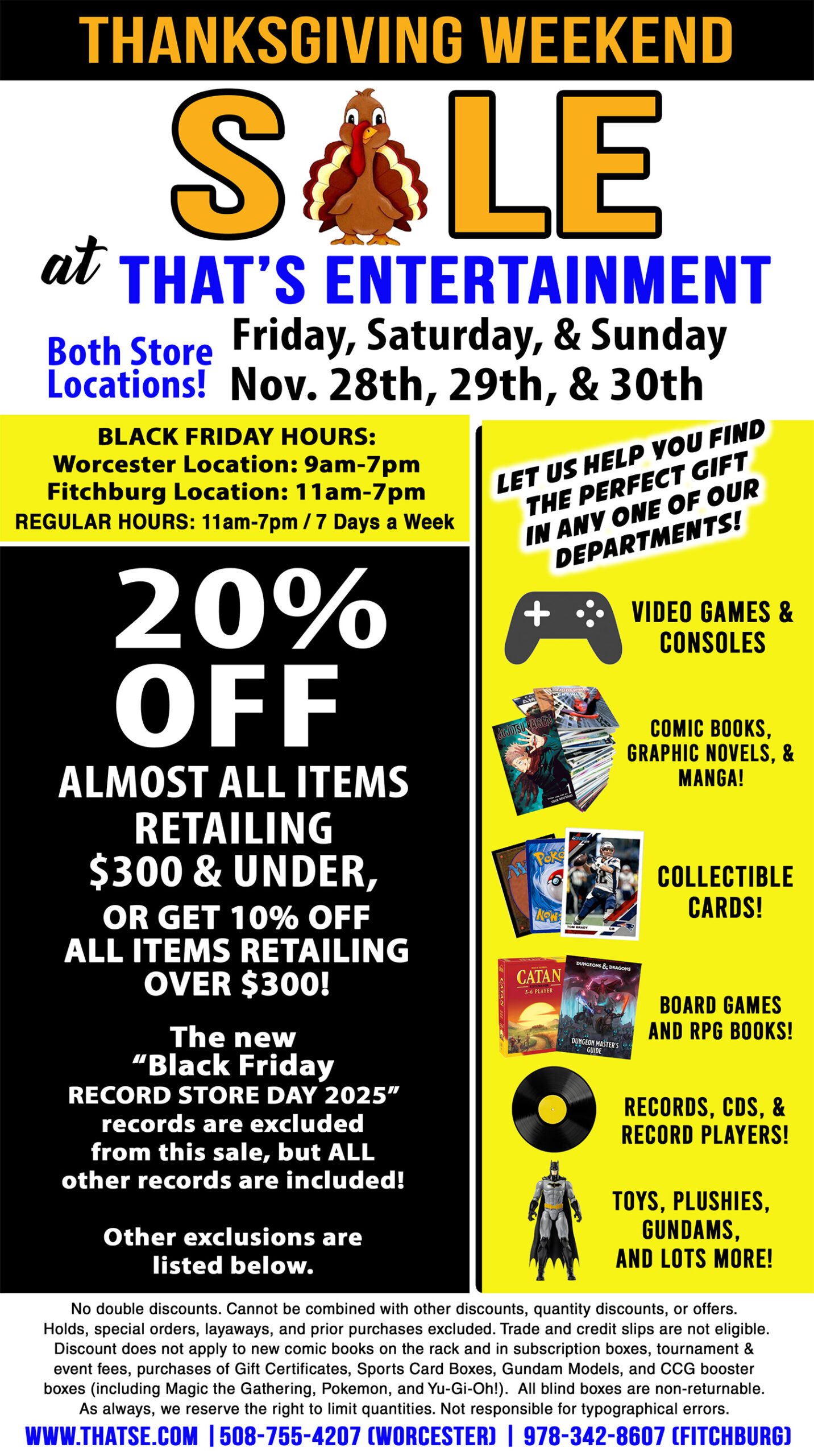 WE BUY AND SELL: We buy, sell and trade popular culture, entertainment merchandise and collectibles. We feature New and Back-Issue Comics, Old-School and Modern Video Games and Systems, Toys (Vintage, New, and Imports), D&D, Magic the Gathering, New and Used Board Games, Vinyl Records (Used and New Pressings), Sport Card Packs and Singles, Autographs, Japanese Imports, Posters, and more! Please stop in to browse!