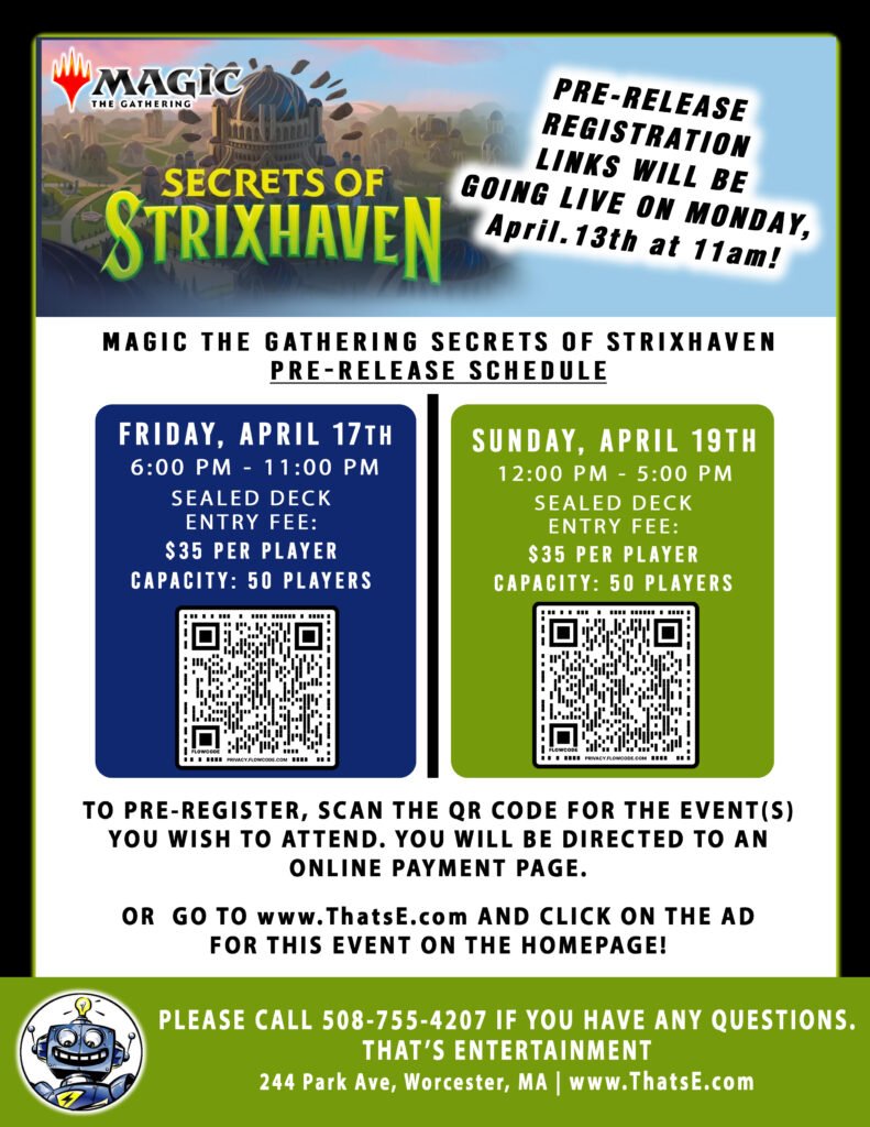 Join us for our Magic the Gathering Secrets of Strixhaven Pre-Release at our Worcester Store!