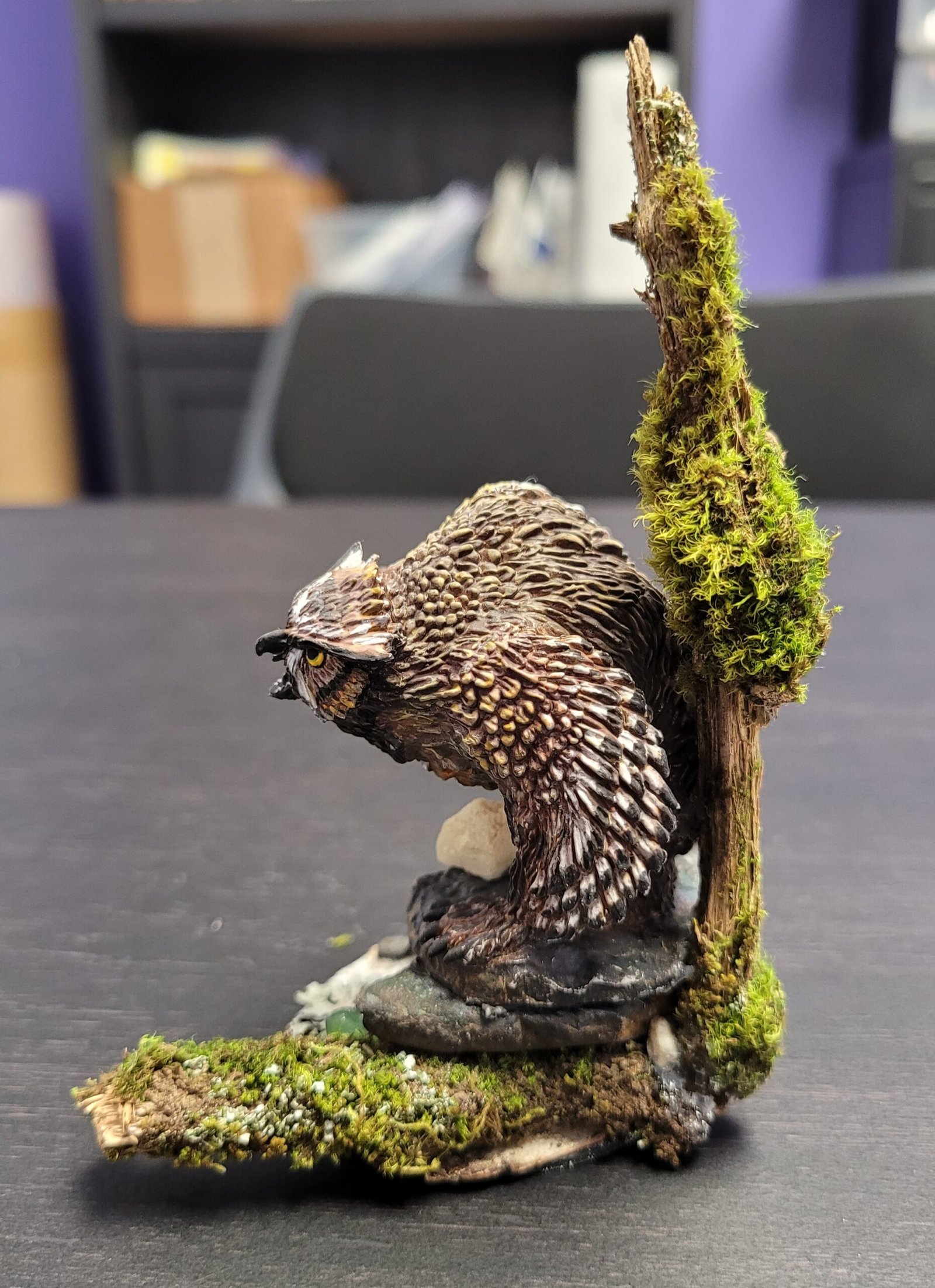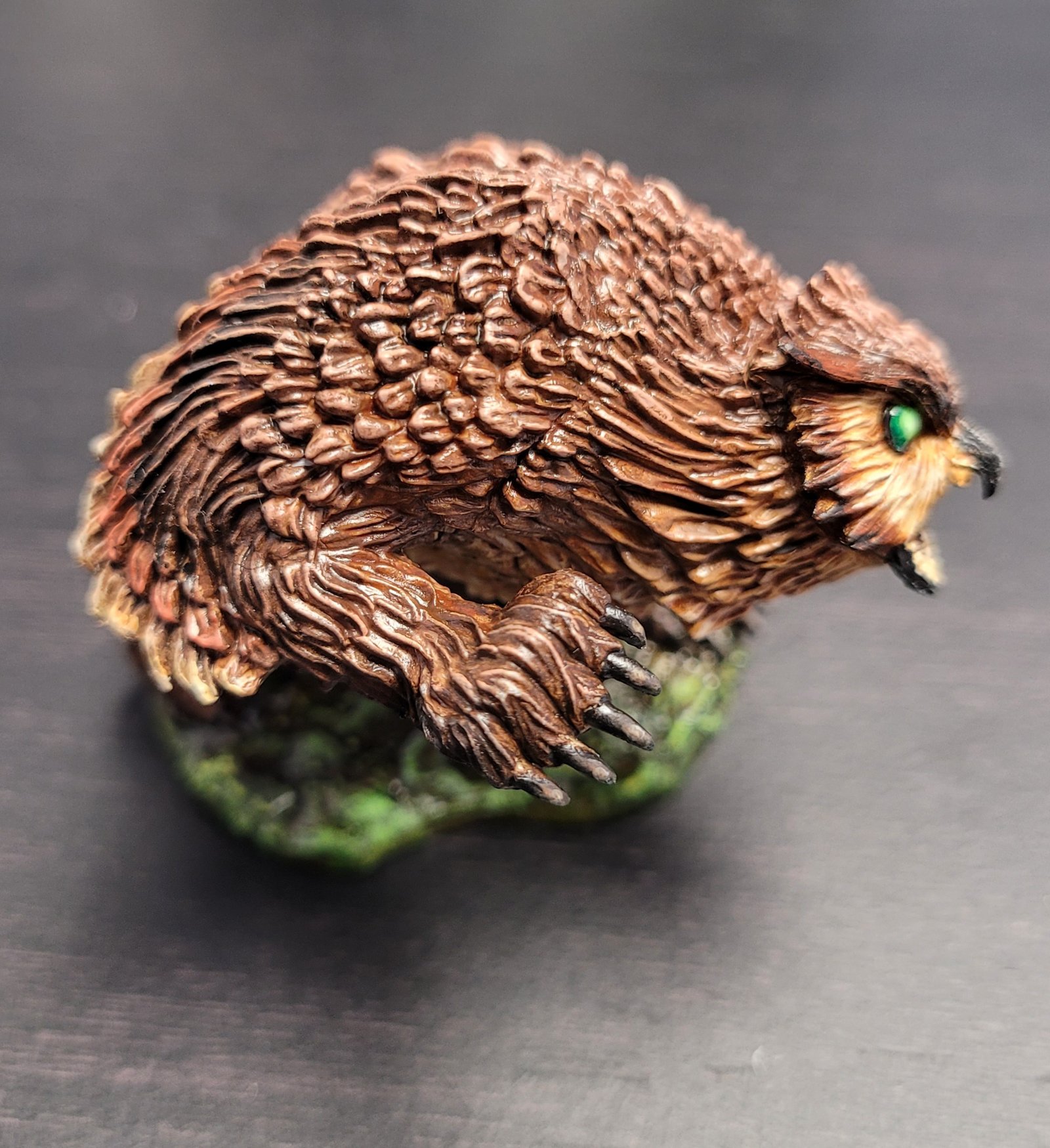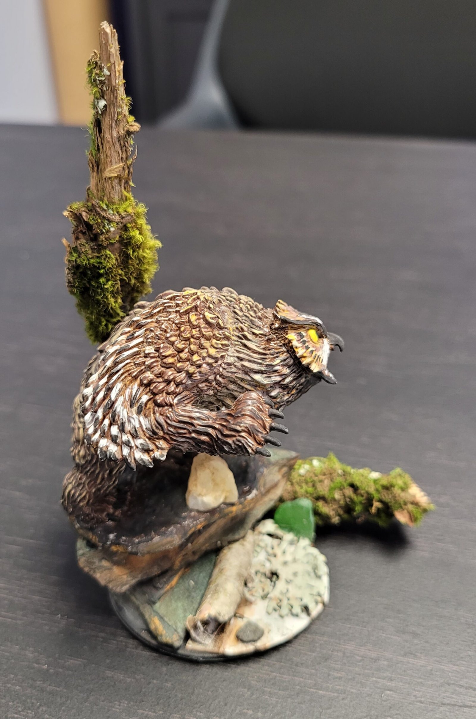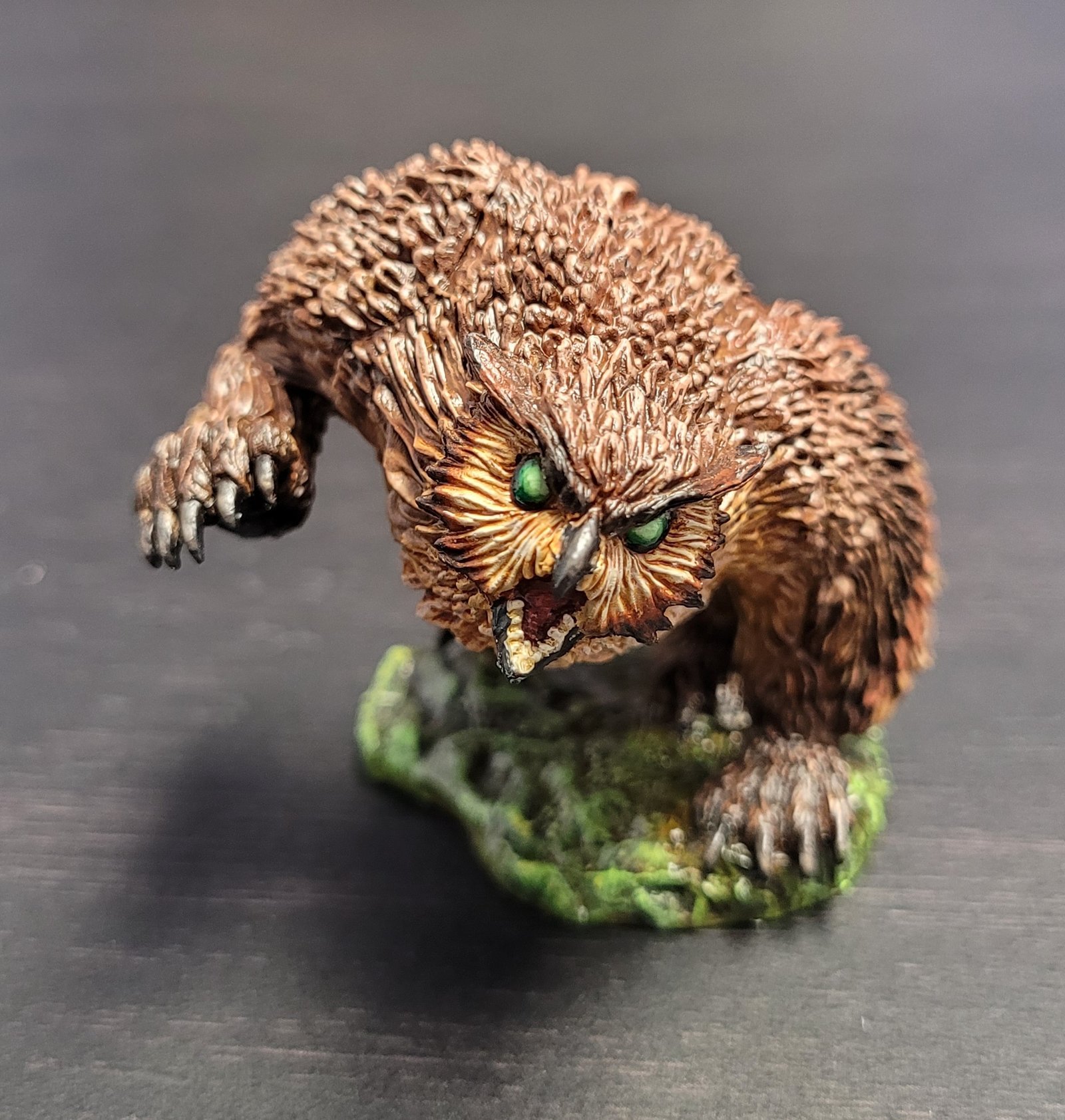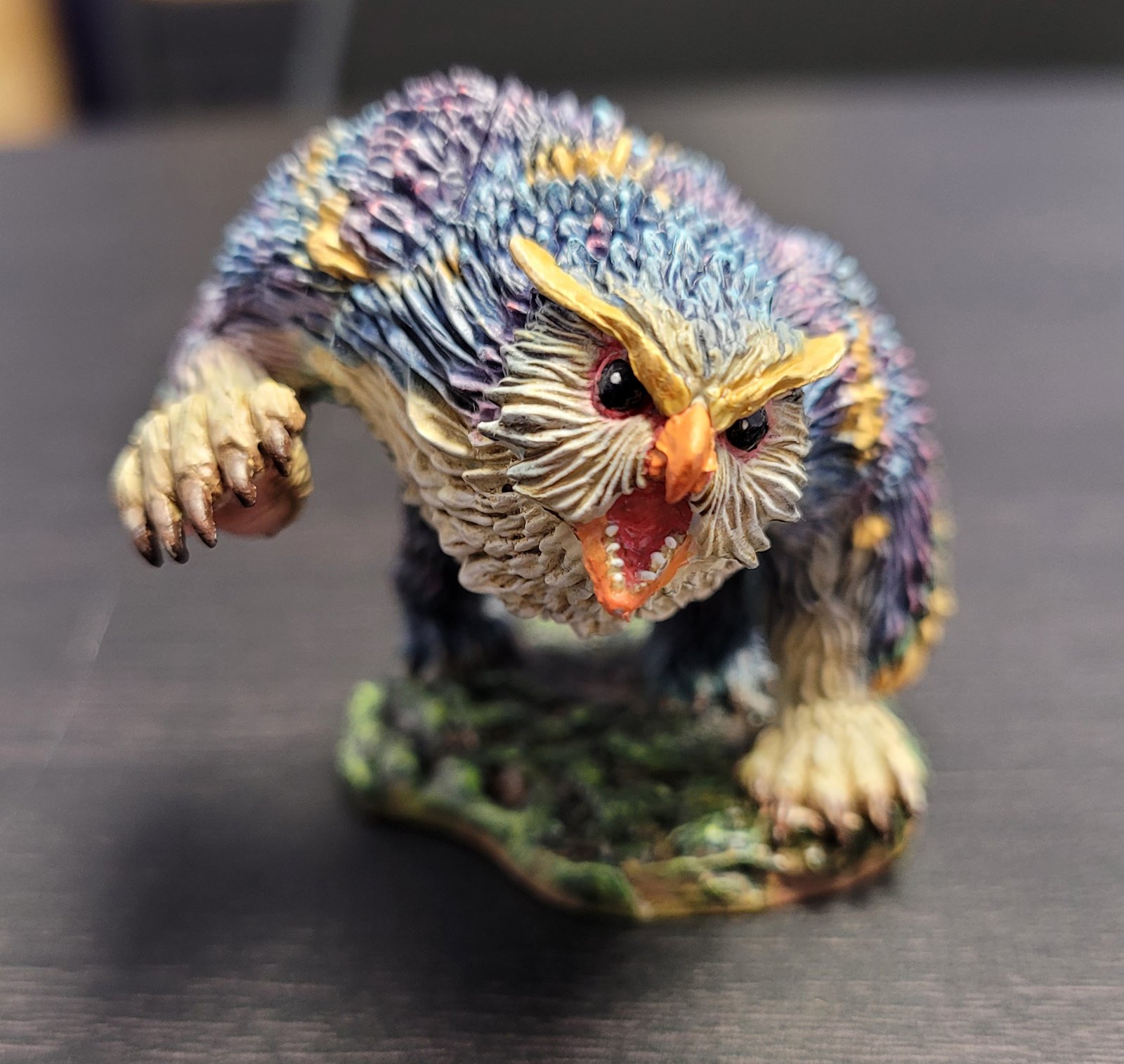 This is an exemplary piece! We feel your painting technique is professional, especially on the feathers around the Owlbear’s face! Beautiful work!