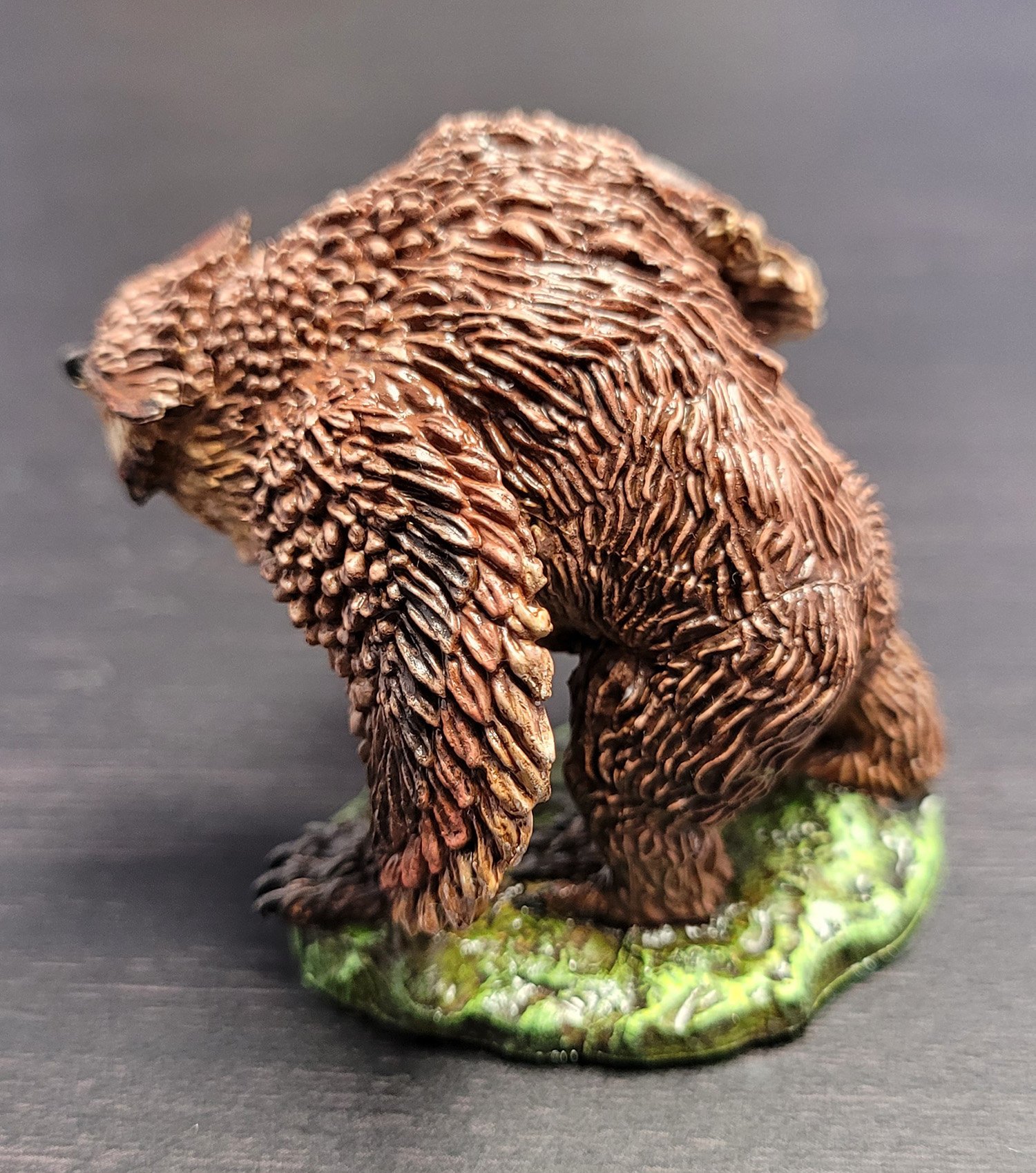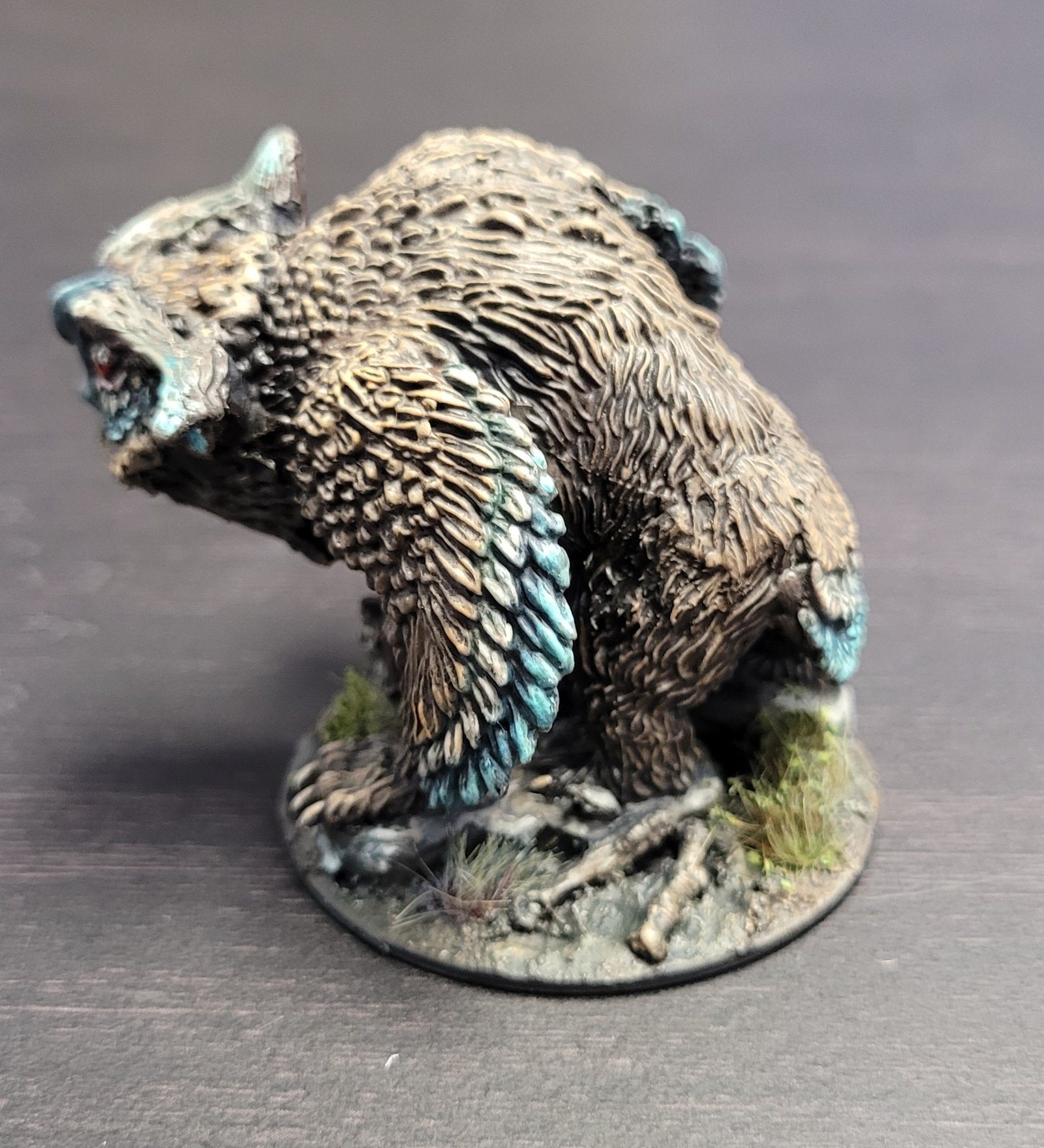 Lovely work, Sara! We especially love your flawless sculpting skills on the face of the Owlbear. It’s a seamless modification! The basing on your miniature is topnotch, with small skulls and flocking to create a very believable environment for your ferocious Owlbear! A+!